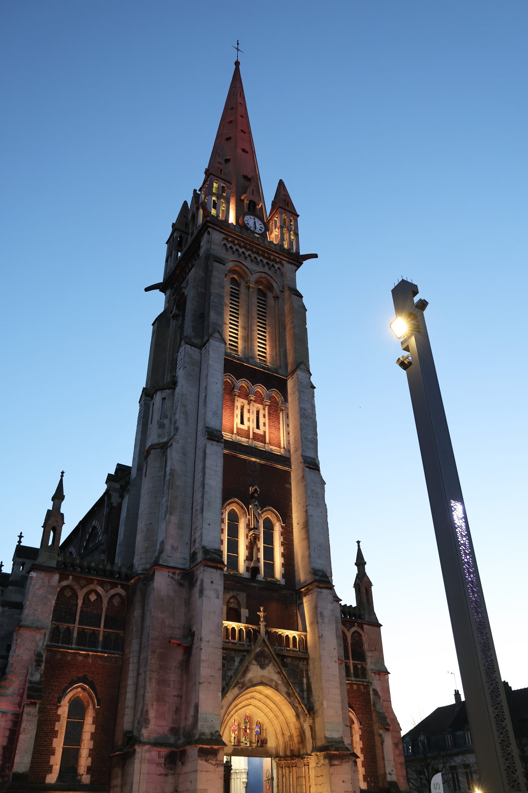 La place Crèvecoeur est le premier lieu à bénéficier d’un embellissement : installées tout autour de la place, 36 colonnes Creille rendant hommage à la dentelle de Calais ont été fabriquées sur mesure par Technilum.