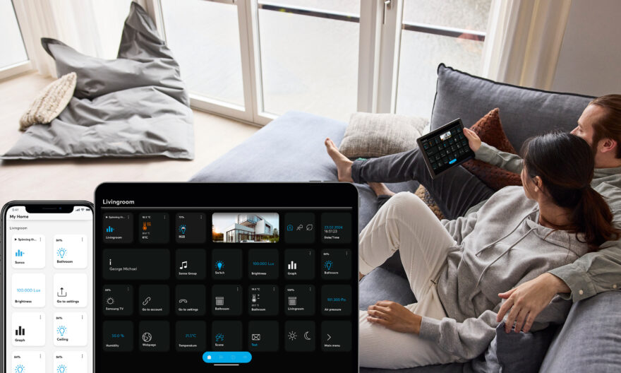 Compatible avec iOS, Android, Windows et MAC, l’application permet aux utilisateurs de gérer via les interrupteurs, les variateurs, les stores, les caméras IP ou encore les appareils UPnP comme Sonos et Philips Hue de leurs installations. Cette application est personnalisable, avec la possibilité d’ajuster les pages de contrôle, les images des pièces et les éléments de commande. Elle est disponible en mode sombre et clair avec une interface moderne et intuitive. L’ensemble des fonctions KNX du bâtiment sont contrôlables depuis n’importe quel appareil connecté.
