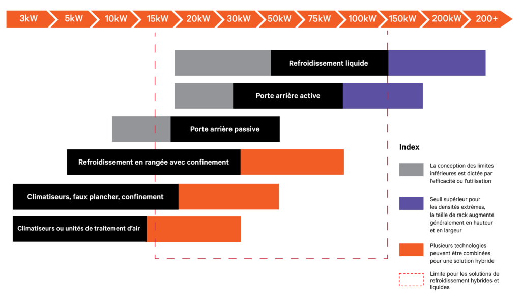 Selon le rapport 2022 Data Center Thermal Management Market Analysis d’Omdia, la demande énergétique des baies informatiques des datacenters devrait passer de 5 à 7 kW à 50 kW ou plus. Cette augmentation représente une évolution significative.
