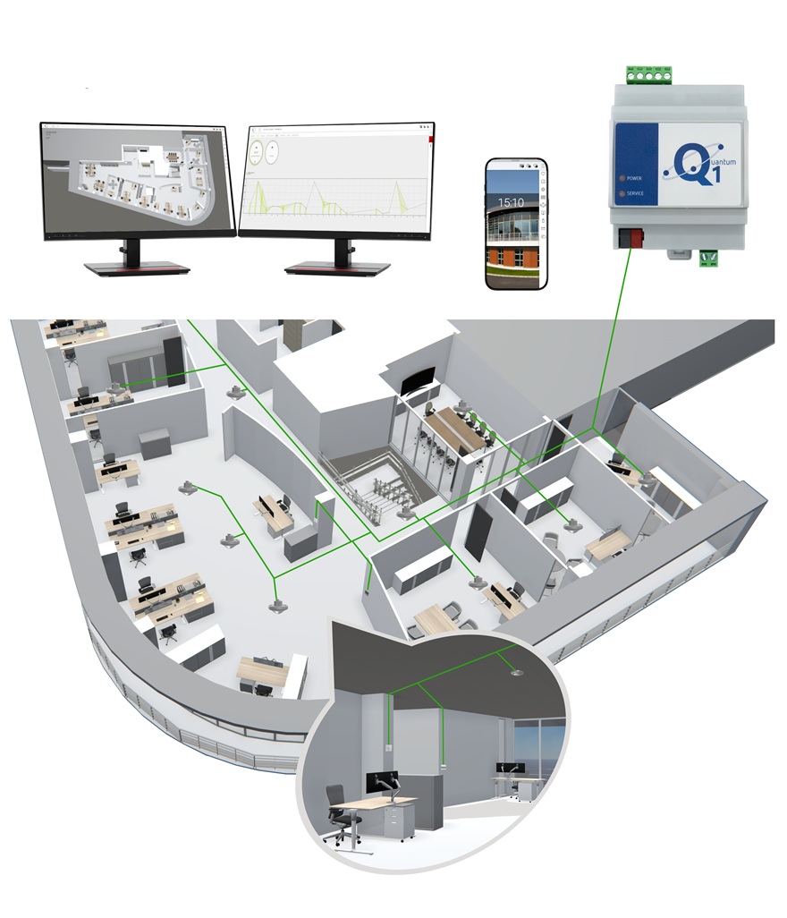 La supervision Quantum, installée au siège français de Theben, fonctionne comme un véritable hub centralisant diverses informations internes provenant des systèmes et capteurs IoT du bâtiment, ainsi que des données externes telles que les prévisions météorologiques. Ce dispositif offre de nouveaux services aux exploitants, aux opérateurs à distance et aux gestionnaires d’énergie, tout en maintenant le confort des occupants, complète l’expert.