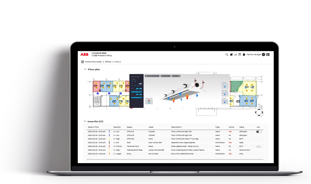Ensuite, les contrôleurs de la gamme E_AÏRON d’ABB peuvent être installés dans des faux plafonds, que ce soit dans une pièce ou une zone de bureaux. Ils sont capables de gérer plusieurs fonctions, comme le chauffage et la climatisation, avec des régulations et sorties pour une variété d’organes comme les réglages des volets d’air, les vannes de climatisation…