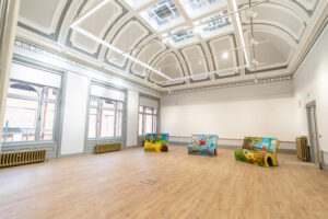 La galerie, avec son plafond haut, est un espace véritablement remarquable qui impressionne par ses plâtres complexes et sa peinture minutieuse. À l’intérieur, un éclairage fonctionnel et d’accentuation soigneusement conçu, intégrant les projecteurs Vivo de Zumtobel, joue un rôle crucial dans la mise en valeur des expositions d’art temporaires.