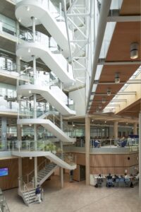 Ce site est une référence en matière d’enseignement au cœur du campus Claverton Down de l’université de Bath. Avec ses sept étages, dont deux niveaux de sous-sol, et son architecture remarquable, le bâtiment est impressionnant. Le luminaire apparent Atrium habille l’architecture, dynamise l’espace et met en valeur des éléments tels que le plafond lambrissé et l’escalier en colimaçon.