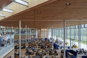 Les luminaires Quintessence, Atrium et Compar soulignent l’architecture durable à l’épreuve du temps ainsi que la technologie pédagogique dans l’ensemble de l’espace. Que ce soit dans le hall principal, dans les couloirs ou dans les amphithéâtres, ces solutions soutiennent l’engagement en faveur de l’efficacité énergétique et de la réduction des émissions carbone.