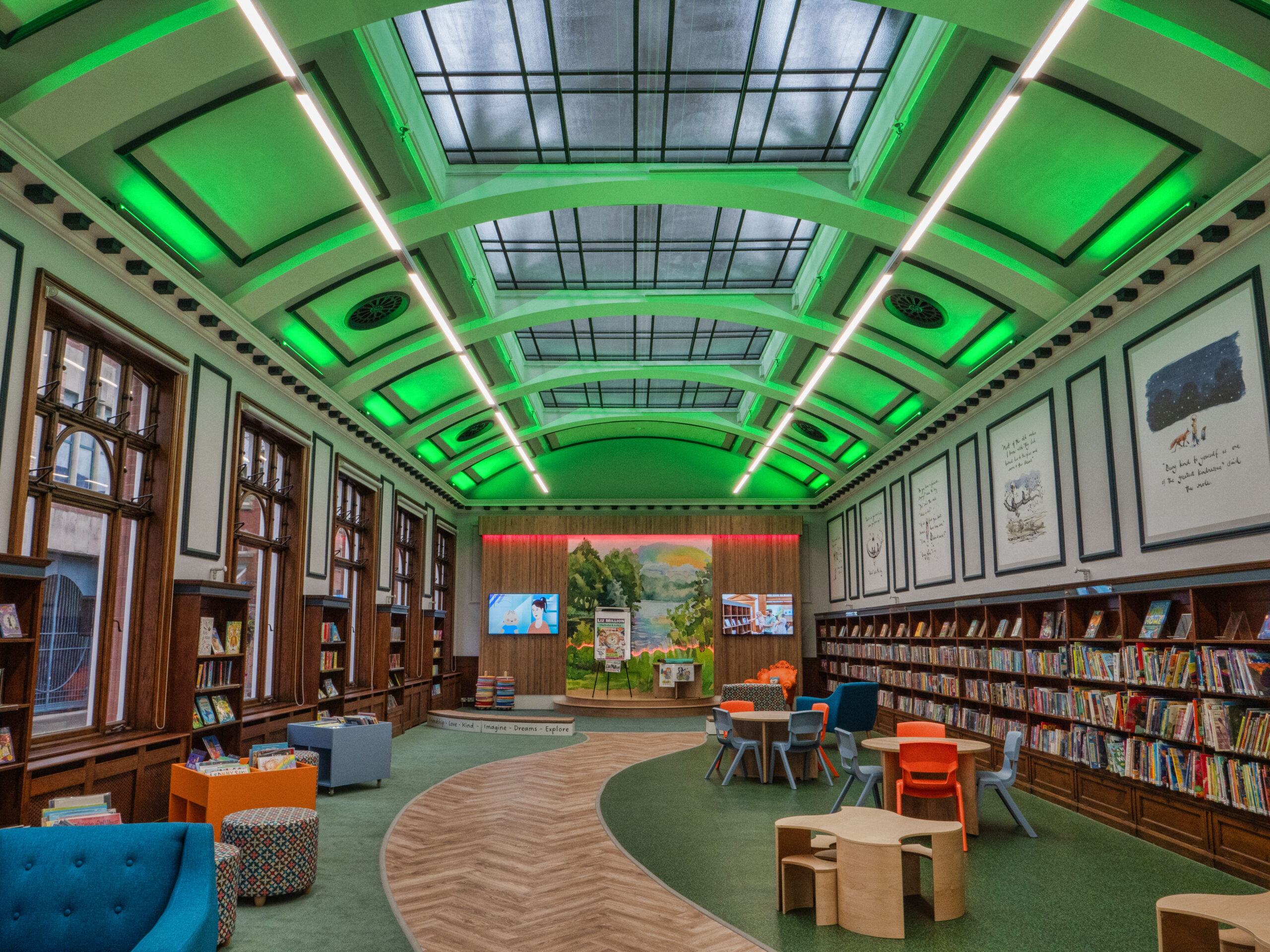 Inspirée d’une forêt enchantée, la bibliothèque pour enfants crée une atmosphère magique et accueillante, captivant l’imaginaire des petits comme des grands. L’éclairage décoratif y est une touche bien pensée qui enrichit l’ambiance et offre une expérience sensorielle unique. Les changements d’éclairage permettent de créer des ambiances différentes, rendant l’espace encore plus enchanteur et immersif.