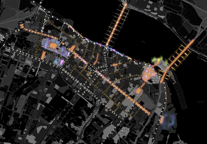 Des parcours nocturnes ont aussi été proposés pour révéler de nuit le patrimoine de la ville. Et les parcs, ouverts toute la nuit, ont aussi fait l’objet de propositions attrayantes de mise en lumière dynamiques et colorées. Les jours suivants, quatre groupes de travail ont été formés (en combinant architectes, professeurs, étudiants et concepteurs lumière) pour élaborer en concurrence les différents thèmes du sdal et de la trame noire du centre-ville.