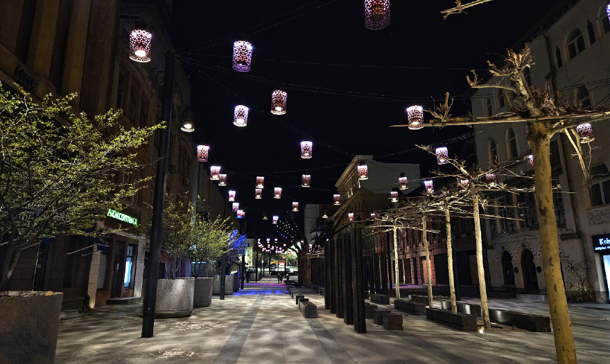 La ville offre aujourd’hui des ambiances nocturnes très contrastées. Depuis quelques années, une politique d’aménagement et de rénovation d’espaces publics a été développée en centre-ville, sur la rive droite du fleuve, pour mieux accueillir les habitants. Ces places ont fait l’objet de mises en lumière innovantes, colorées, dynamiques et interactives, grâce au talent de Mykola Kabluka et de son équipe d’Expolight.