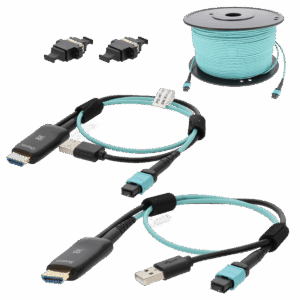 F. B. – L’innovation chez Erard passe depuis plusieurs années par une expertise poussée dans la connectique et l’affichage dynamique. L’entreprise propose aujourd’hui l’une des gammes les plus larges du marché, avec plus de deux mille références en HDMI, USB-C, DisplayPort, fibre optique et boîtiers électroniques. La fiabilité de la transmission, la gestion des signaux sur de très longues distances et la capacité à traiter tous les cas de figure sont au cœur de la philosophie Erard. Les cordons actifs hybrides AOC, par exemple, intègrent fibre et cuivre, permettant de transmettre une image de qualité égale sur 10, 100 ou même 300 mètres, selon les modèles et besoins. La marque a aussi développé des solutions originales, comme des docks USB-C montés sur platine pour être discrètement installés derrière l’écran, permettant d’unifier toute l’interconnexion (vidéo, data, charge) avec un seul câble, l’installation devenant ainsi plus pratique et plus ergonomique. L’offre s’étend également à tous les types de conversions et de répartitions de signal à travers des boîtiers professionnels, nécessaires à l’équipement des salles de réunion modernes ou des huddle rooms et à l’affichage interactif en magasin ou en industrie.