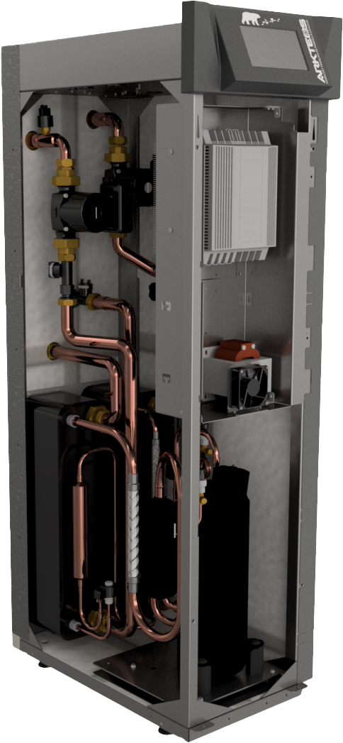 •La pompe à chaleur eau-eau Invelia, dernière génération d’Arkteos, dotée d’un compresseur Inverter et d’une régulation connectée, spécialement adaptée pour exploiter pleinement le potentiel thermique des panneaux SPRING Max-fabriqué à Guérande (44).