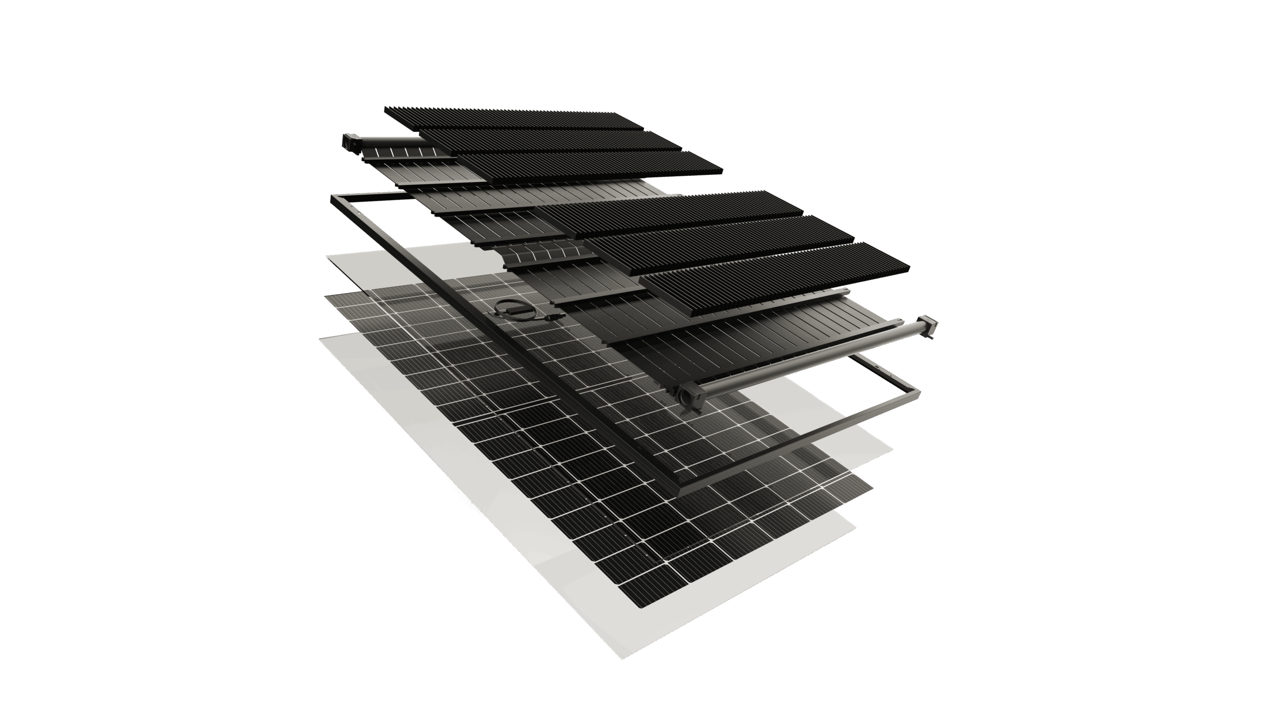 •Le panneau hybride SPRING MAX, aboutissement de la technologie solaire de Dualsun, qui associe photovoltaïque et captation thermique décuplée par les ailettes de son échangeur en aluminium-assemblé à Jujurieux (01)