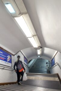 « Nous avons développé des luminaires pour équiper les couloirs, les escaliers et les escalators, détaille Grégoire Conesa. Le système prend la forme d’un bandeau central, une ligne continue dotée d’un double éclairage direct/indirect. L’indirect est utilisé lorsque la voûte est très haute, notamment dans les escaliers. Le bandeau lumineux intègre aussi les câbles, les antennes 4G, les haut-parleurs, les caméras de sécurité, etc. Nous avons tout anticipé pour accueillir ces équipements. À première vue, tous les blocs se ressemblent, mais aucun palier, aucun coude n’est identique. Nos équipes se sont donc rendues sur place, ont pris les mesures pour définir des pièces adaptées à chaque configuration. »