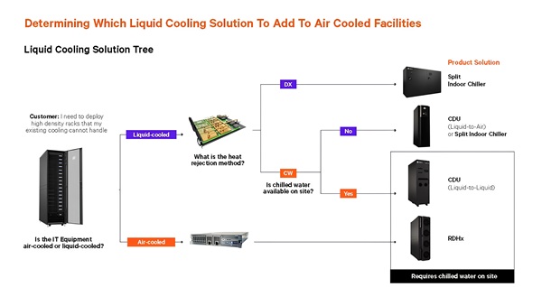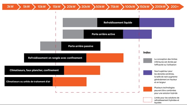 ear Door Heat Exchangers), présentent l’avantage d’être une véritable solution évolutive et flexible qui utilise la tuyauterie existante des clients, réduisant ainsi les dépenses d’investissement initiales pour établir des solutions à plus haute densité. À titre d’exemple, les RDHx ont maintenant la flexibilité de refroidir une armoire de 20 kW, avec la possibilité de l’adapter à 100-200 kW, car la technologie de l’IA et les solutions de calcul élevé augmentent leur demande d’alimentation et de refroidissement à la demande.