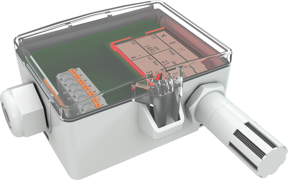 En outre, les concepteurs et les exploitants de bâtiments ont à leur disposition un large éventail de choix. La gamme des produits s’étend des capteurs d‘ambiance de différents indices de protection IP20 à IP65, à différents types, selon leur montage, comme des capteurs pendulaires pour plafond ou directement dans l‘armoire de serveurs, jusqu‘aux capteurs équipés d’affichage couleur. Bien visibles même à distance, ces afficheurs à code de couleur permettent d’attirer l’attention tant sur des paramètres imprévus que sur le dépassement de valeurs limites, et d’y remédier immédiatement pour éviter des dégâts éventuels.