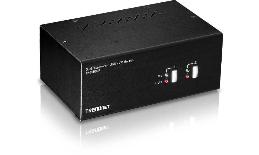 Le switch KVM DisplayPort à deux ports TK-240DP de TRENDnet permet de contrôler deux ordinateurs avec une seule console. Avec une résolution jusqu’à 4K UHD, sans installation de pilote, il est conçu pour les configurations à deux écrans avec souris et clavier USB, le TK-240DP intègre un hub USB à deux ports pour partager des périphériques de stockage ou des imprimantes entre les ordinateurs.