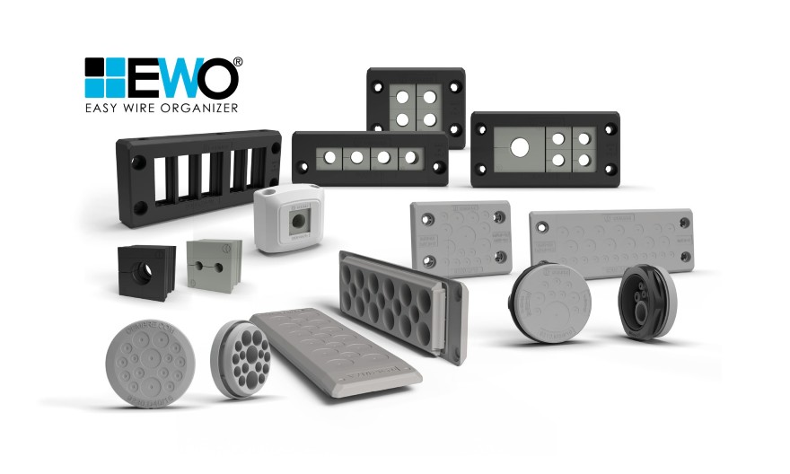 Pour le passage de câbles non raccordés, la gamme EWO propose des passe-câbles à membrane en élastomère TPE auto-extinguible (UL94 V0).