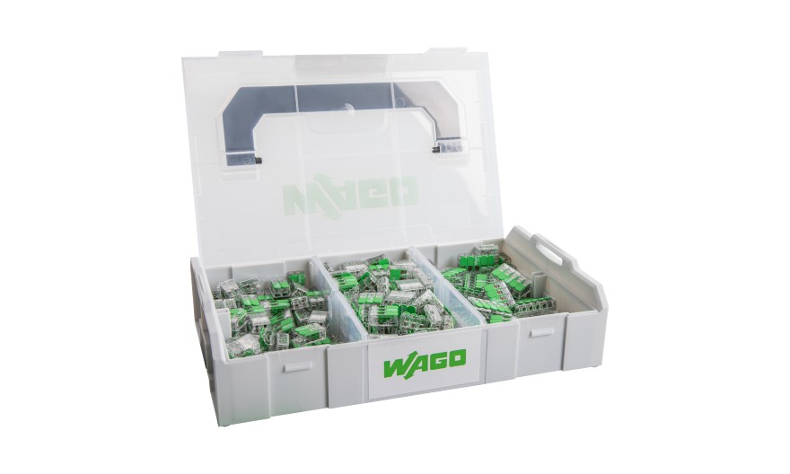 À l’intérieur, 250 bornes de connexion 221 Green Range sont réparties en trois compartiments distincts pour les connexions à 2, 3 et 5 fils. Cette organisation claire permet d’identifier immédiatement le produit adapté et de gagner un temps précieux lors des opérations de raccordement, même en mobilité. Les installateurs retrouvent ainsi des gestes familiers, une mise en œuvre simple et une fiabilité reconnue.