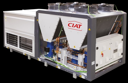 La gamme VECTIOSPOWER R-454B de Carrier présente 80 % de réduction de l’empreinte CO2 directe grâce au nouveau fluide frigorigène R-454B. © Carrier