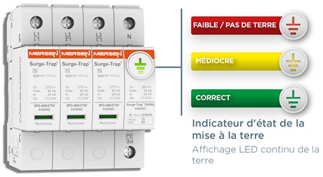 En prenant en compte les retours d’expérience des sociétés de maintenance des IRVE opérant sur les autoroutes, qui remontaient des pannes régulières liées à des problèmes de terre, Mersen a enrichi sa gamme de parafoudres de type 2 AC avec la solution Terra. « Les parafoudres ne sont qu’un bouclier. Le premier organe de protection contre les surtensions est la qualité de la terre. Terra est le premier parasurtenseur du marché qui, en plus d’indiquer qu’il est correctement câblé, garantit qu’il existe un chemin correct vers la terre au travers d’un code couleur : vert, la terre est bonne ; jaune, la terre est connectée, mais de mauvaise qualité ; et rouge, la terre est déconnectée », explique Florent Ivankovics.